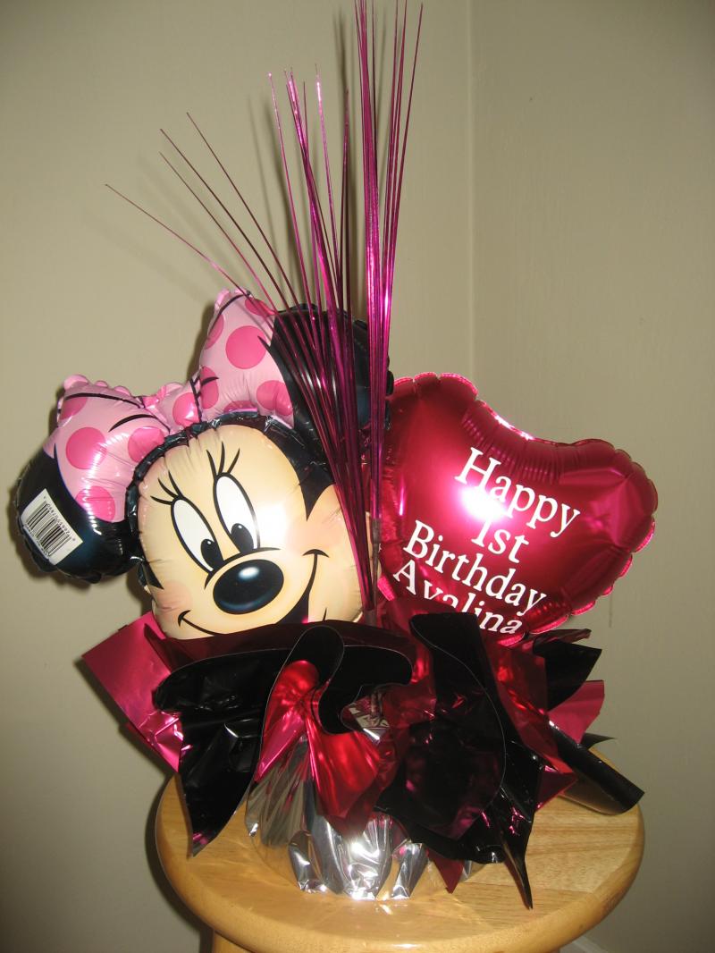 MINNIE MOUSE BALLOON CENTERPIECE WITH PERSONALIZED 9" MYLAR BALLOON