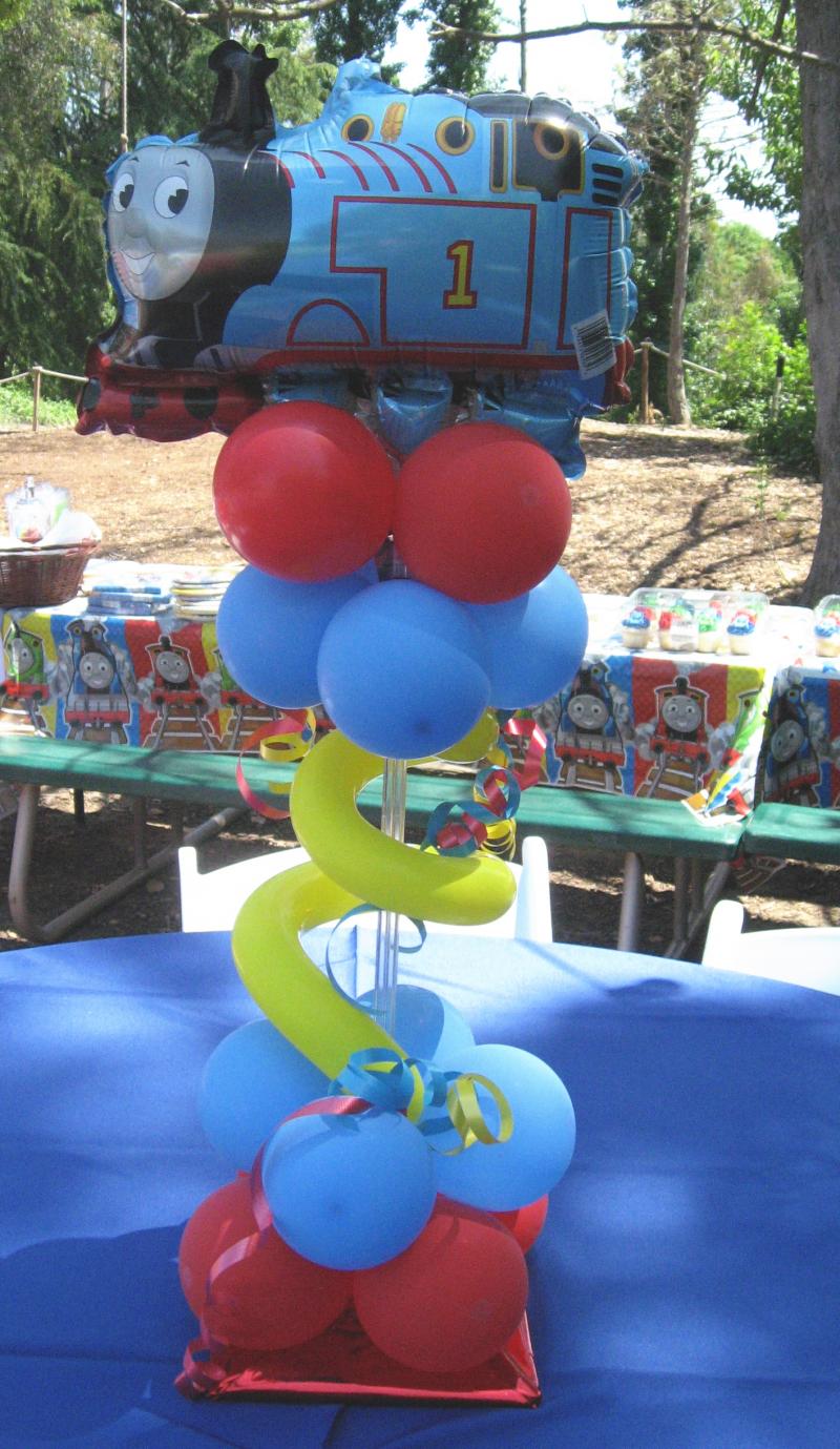 THOMAS THE TRAIN BALLOON CENTERPIECE. COULD ALSO USE HELLO KITTY, MICKEY MOUSE, SESAME STREET AND OTHER LICENSED BALLOON CHARACTERS