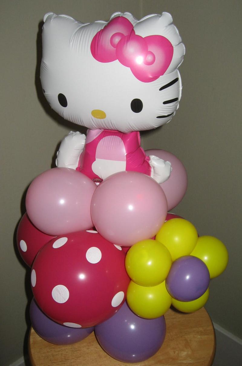 HELLO KITTY BALLOON CENTERPIECE WITH BALLOON FLOWERS AT BASE