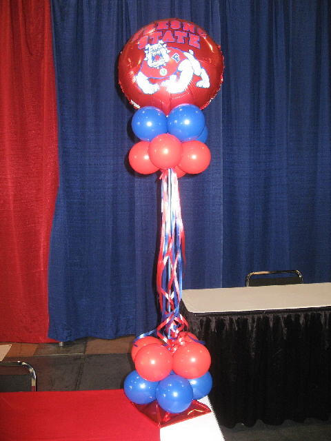FRESNO STATE BALLOON CENTERPIECE. CAN USE ANY SPORTS OR OTHER BALLOON AT TOP