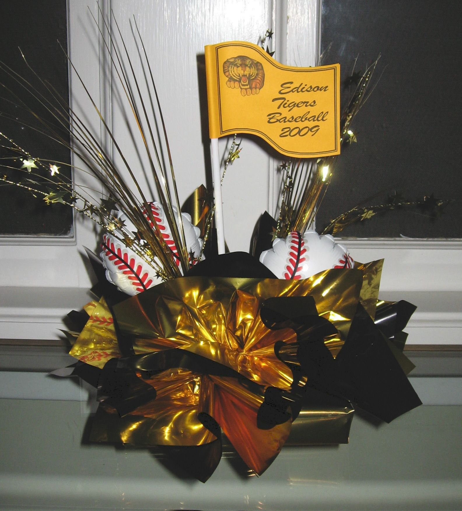 BASEBALL THEMED BALLOON CENTERPIECESDOUBLE STUFFED BALLOON CENTERPIECE